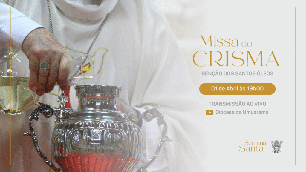 Nesta quarta-feira (1º), às 19h, a Catedral do Divino Espírito Santo sediará a Solene Missa do Crisma, um dos momentos mais importantes da vida litúrgica da Igreja. A celebração reunirá o clero e os fiéis da diocese para a bênção dos Santos Óleos, que serão utilizados nos sacramentos ao longo
