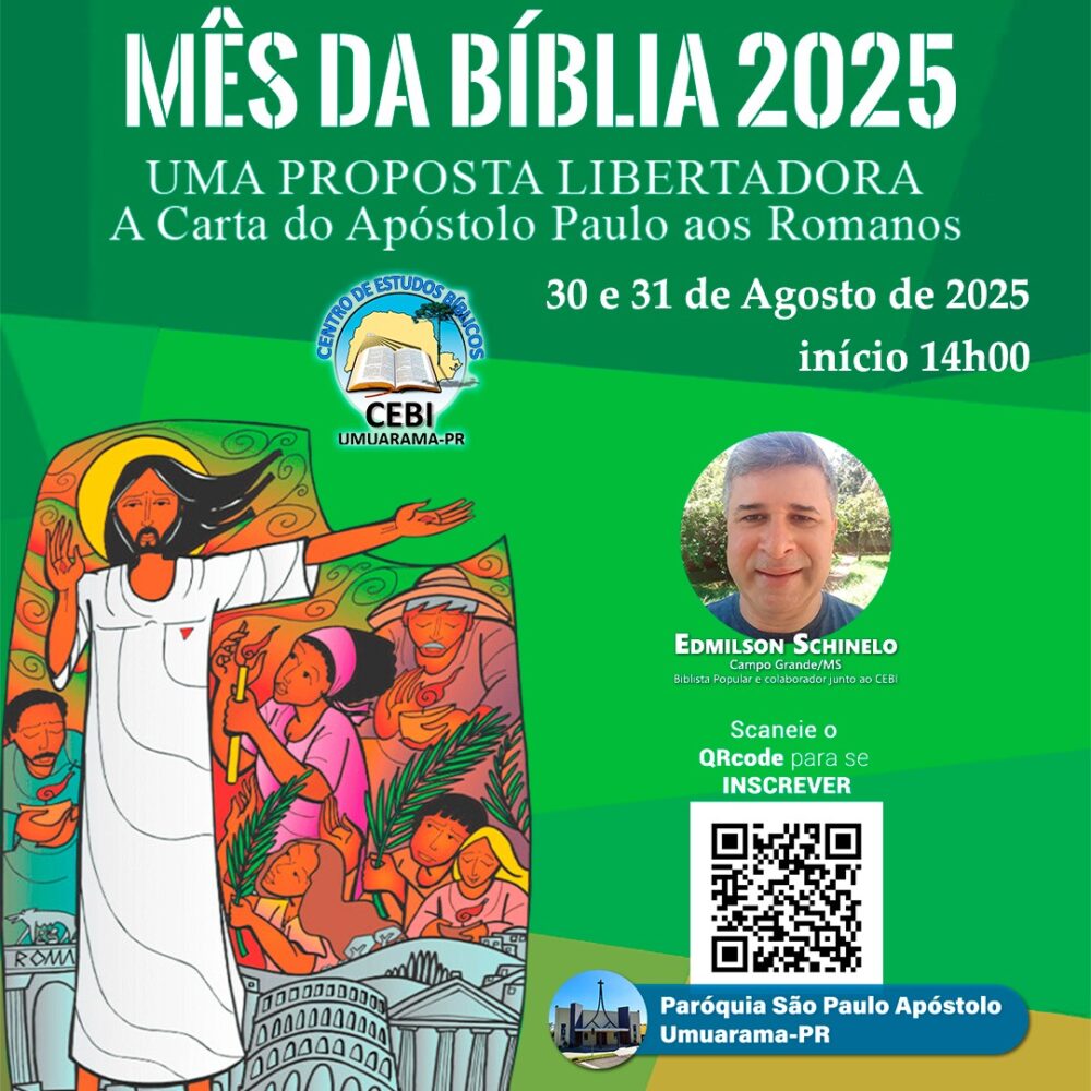 O CEBI – CENTRO DE ESTUDOS BÍBLICOS da Sub-Região de Umuarama, tem a alegria de convidar para o Encontro de Abertura ao mês da Bíblia de 2025 que é A Carta aos Romanos, com o lema “A esperança não decepciona” (Rm 5,5).