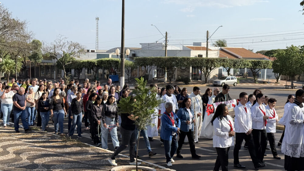 O evento teve início às 8h30min com uma peregrinação, partindo em frente ao Lar São Francisco de Assis rumo à matriz paroquial. Ao longo do trajeto, os participantes entoavam cânticos e orações, louvando e bendizendo em um clima de intensa espiritualidade.