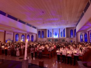 Na Catedral do Divino Espírito Santo, os jovens foram enviados na Santa Missa, na noite de domingo (23). Cerca de 55 jovens do Caminho Neocatecumenal das Paróquias Catedral, de Umuarama; Paróquia São Pedro, de Perobal e da Paróquia Sagrado Coração de Jesus, de Umuarama; foram enviados. O Padre Wagner Pereira, Vigário da Paróquia Sagrado Coração de Jesus, de Santa Eliza, e Assessor do Setor Diocesano da Juventude, foi com esse grupo.