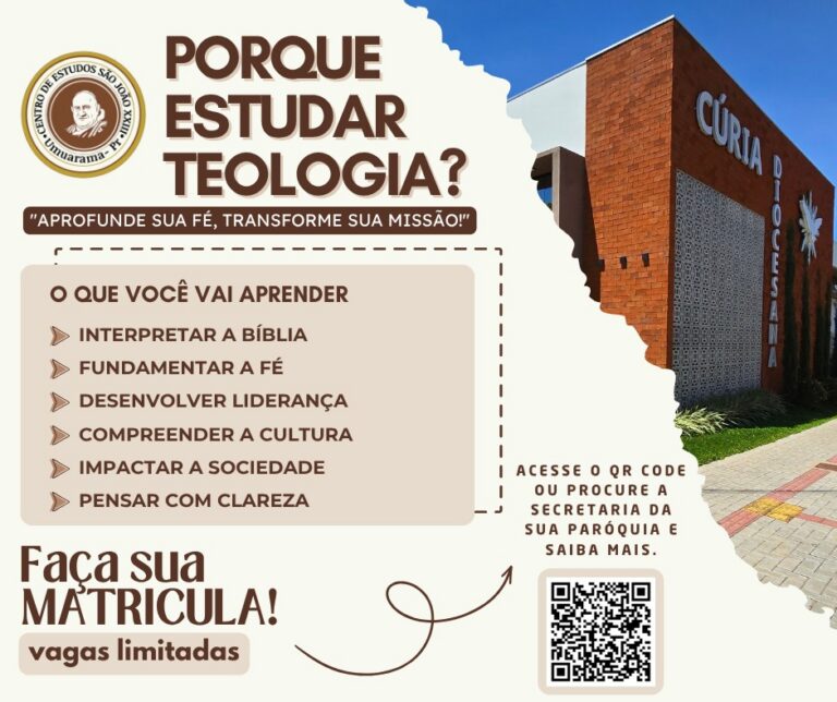 As matrículas para o Curso de Teologia e Liturgia estão oficialmente abertas. Este é o seu chamado para aprofundar a fé e o conhecimento. Aprenda a celebrar, entender e viver a tradição com profundidade. Garanta sua vaga para 2026 – Acesse pelo QR CODE da imagem ou entre em contato com a Paróquia mais próxima […]