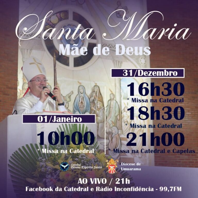 Paróquias divulgam horários de missas na Solenidade de Santa Maria, Mãe de Deus, para os dias 31/12 e 01/01/2021 Segue os horários das Missas na Catedral de Umuarama: Haverá missas na Catedral e capelas conforme descrição no banner. Dom João Mamede Filho, Bispo diocesano, irá presidir a celebração na Catedral de Umuarama, na noite do […]