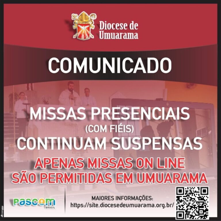 Lembrando, que as Celebrações Eucarísticas continuam sendo transmitidas nas redes sociais das Paróquias Os padres dos decanatos Catedral e São Francisco de Assis, da cidade de Umuarama, decidiram manter suspensas as Missas com a presença de fiéis, apesar do novo decreto da prefeitura (publicado no dia 22/05/2020). Entendem, os párocos, que é uma forma de […]