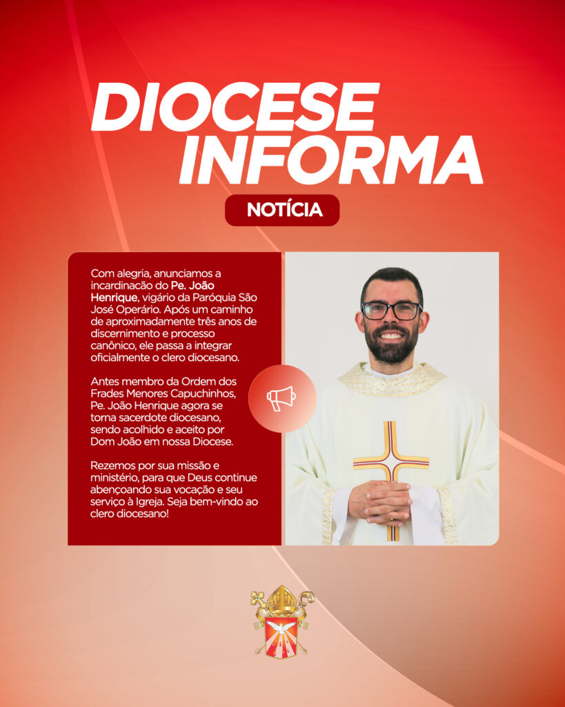 Antes Frei João Henrique Santana, OFMCap., agora passa a fazer parte do clero diocesano, colocando seu ministério a serviço da Igreja Particular. A Diocese de Umuarama o acolhe e o abençoa nesta nova missão. Assessoria de Imprensa Diocesana