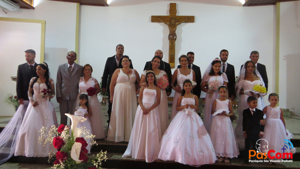 A Paróquia São Vicente Pallotti realizou através da Pastoral Familiar no último sábado (30) às 17h o Casamento Comunitário. Sete (7) casais estiveram na Presença de Deus para receber as bênçãos do Sacramento do Matrimônio. Os Matrimônios foram assistidos por Padre Francisco José Navarro.
