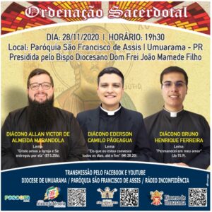 A solenidade será aberta aos fiéis e transmitida ao vivo pela TV UP e pelo Youtube e Facebook da Catedral Diocesana Divino Espírito Santo e da Diocese de Umuarama.