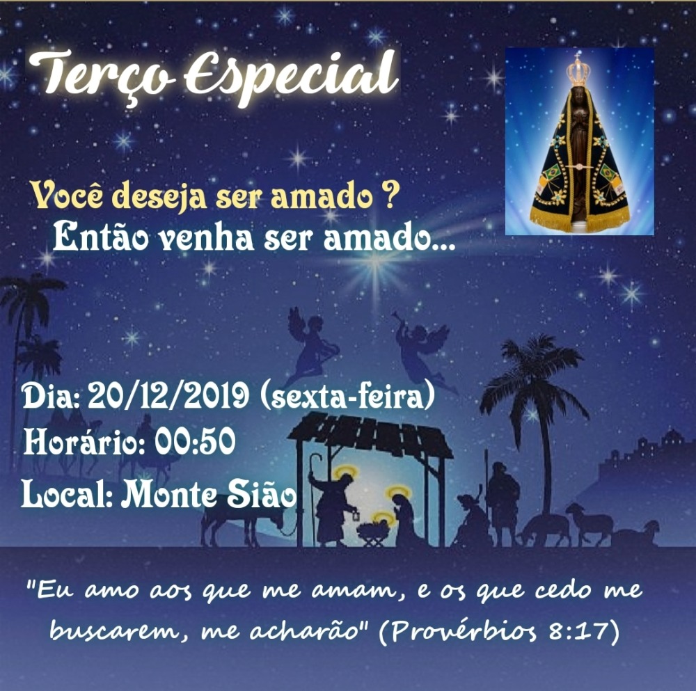 Terço Especial nesta sexta- feira (20) no Monte Sião