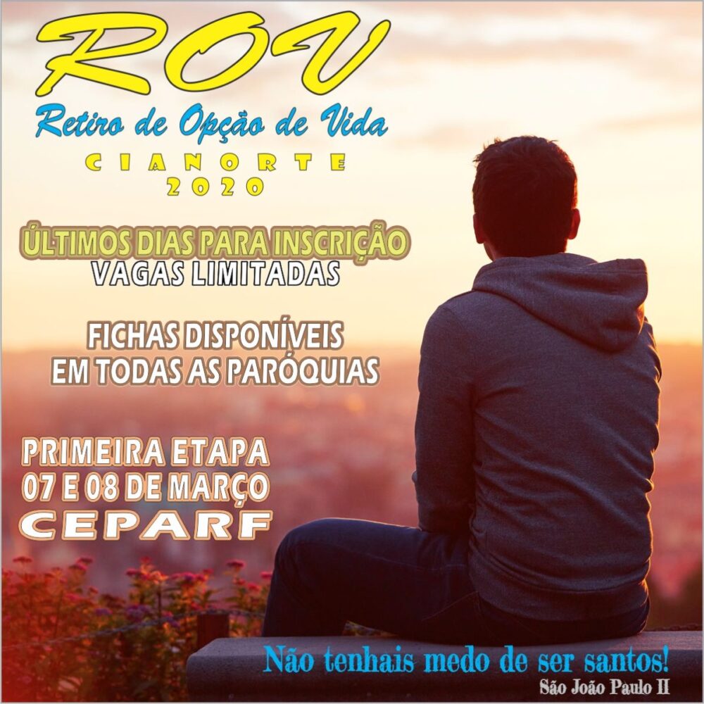 As inscrições para o Retiro de Opção de Vida (ROV) de Cianorte estão na fase final e podem ser feitas em todas as Paróquias do Decanato de Cianorte.