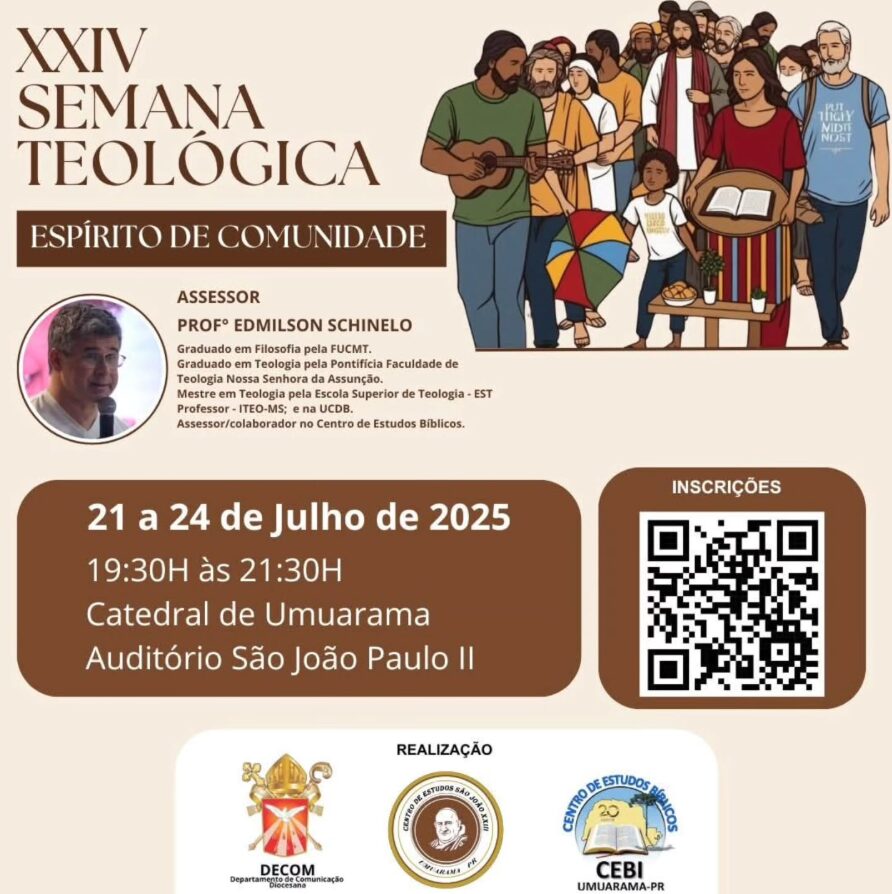 De 21 a 24 de julho acontecerá a XXIV Semana Teológica da Escola Diocesana de Teologia São João XXIII. Não fique de fora! Serão quatro dias de muito aprendizado e aprofundamento na fé, para uma vida cada vez mais enraizada em Cristo. O evento acontecerá todos os dias das 19h30 às 21h30.